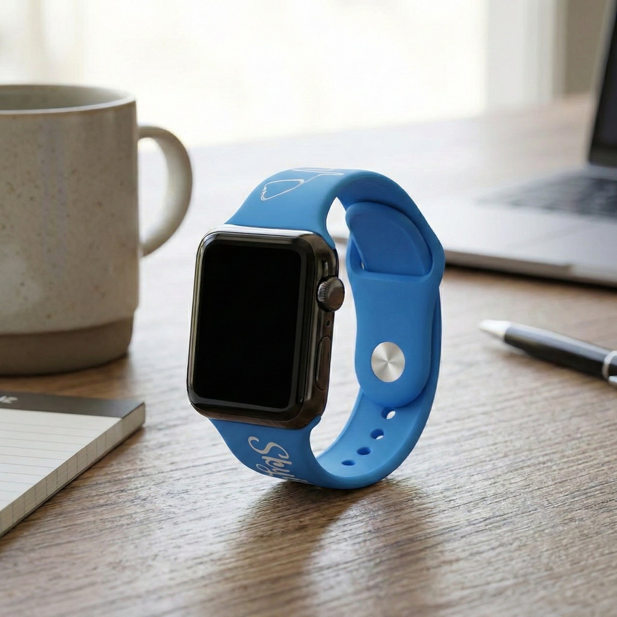 Engineered for Movement. The SkyGiving Active Flow band is crafted from high-performance, ultra-soft silicone that balances durability with all-day comfort. Featuring a vibrant sky-blue hue and unique linear artistic patterns, this strap adds a touch of modern flair to your everyday tech.