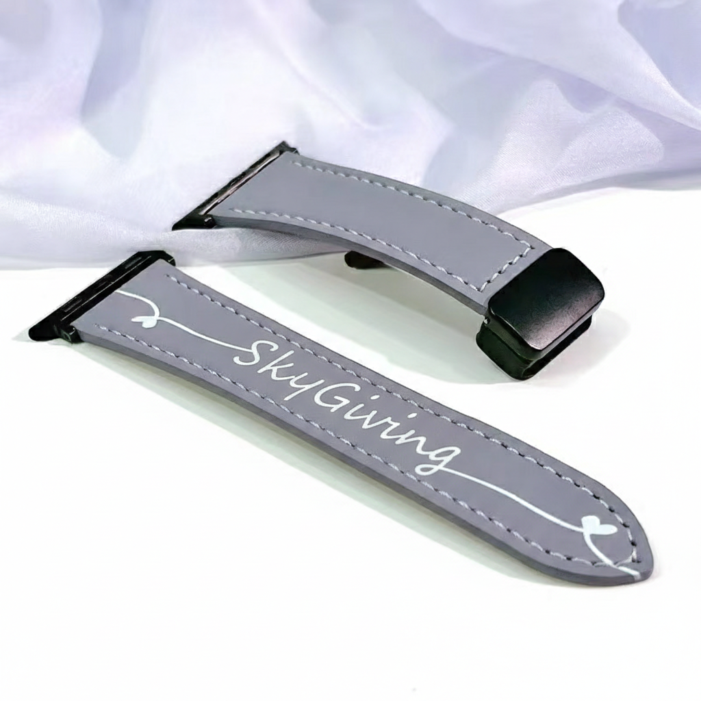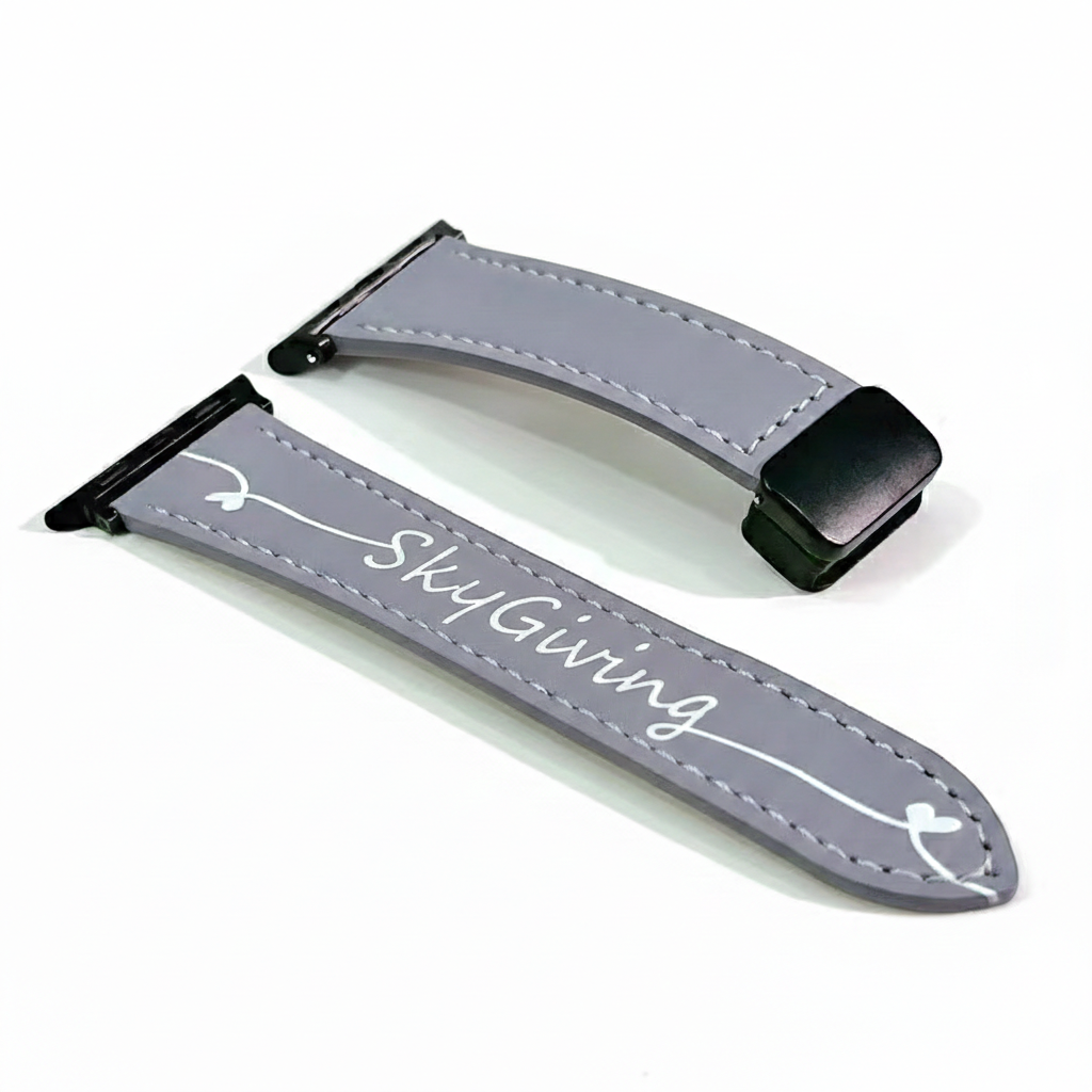 Sophistication in every stitch. The SkyGiving Urban Verse strap is crafted from high-quality, pebble-grained leather in a timeless slate grey. Featuring a sleek, low-profile silhouette and reinforced contrast stitching, this band brings a touch of tailored elegance to your smartwatch.