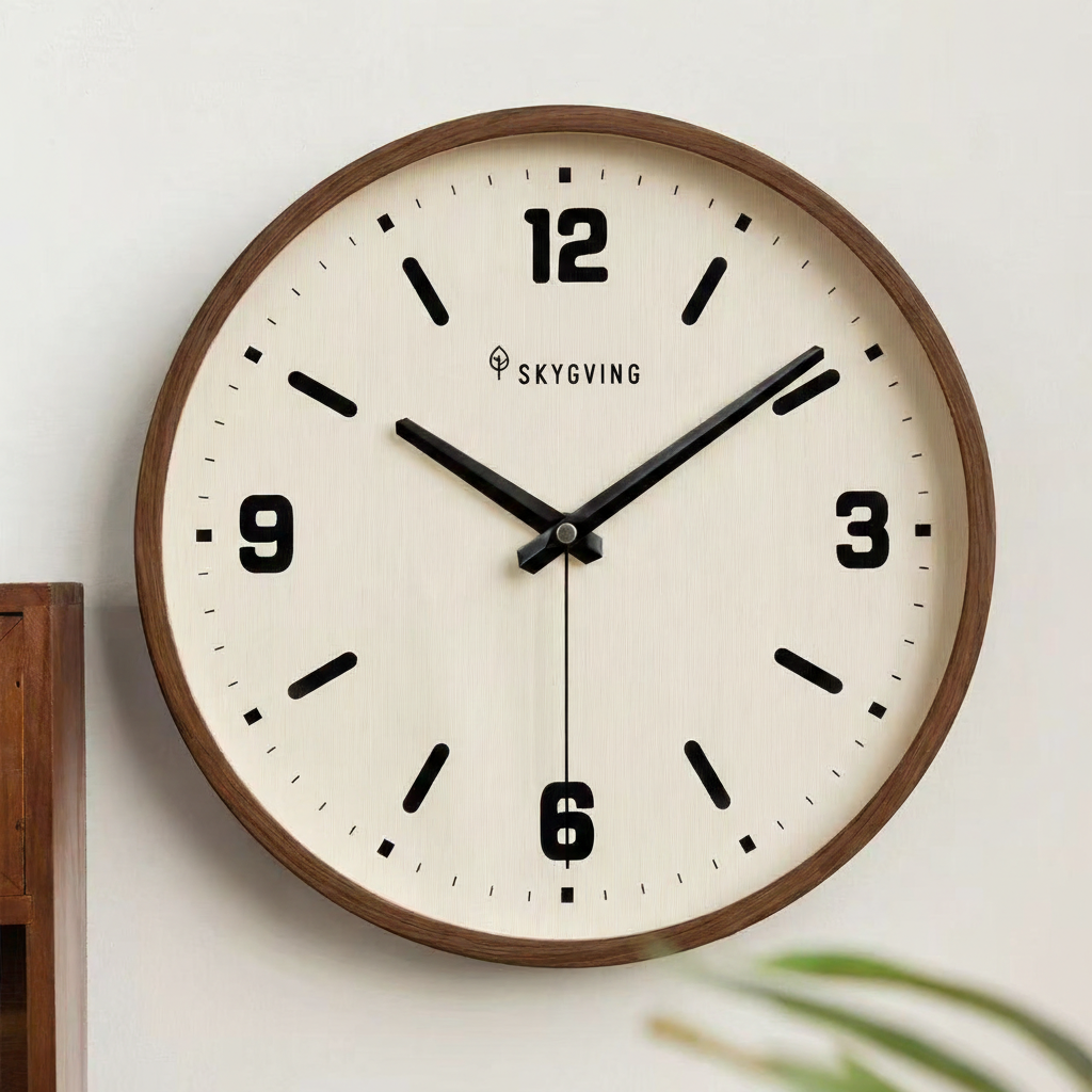 Skygving WoodLine: Natural Texture, Timeless Precision. Crafted with a premium solid wood frame and a clean, minimalist dial, this clock brings the warmth of nature into your modern workspace. Its bold typography ensures easy reading at a glance, while the silent movement provides a peaceful environment. A perfect functional accent for those who value simplicity and natural aesthetics.